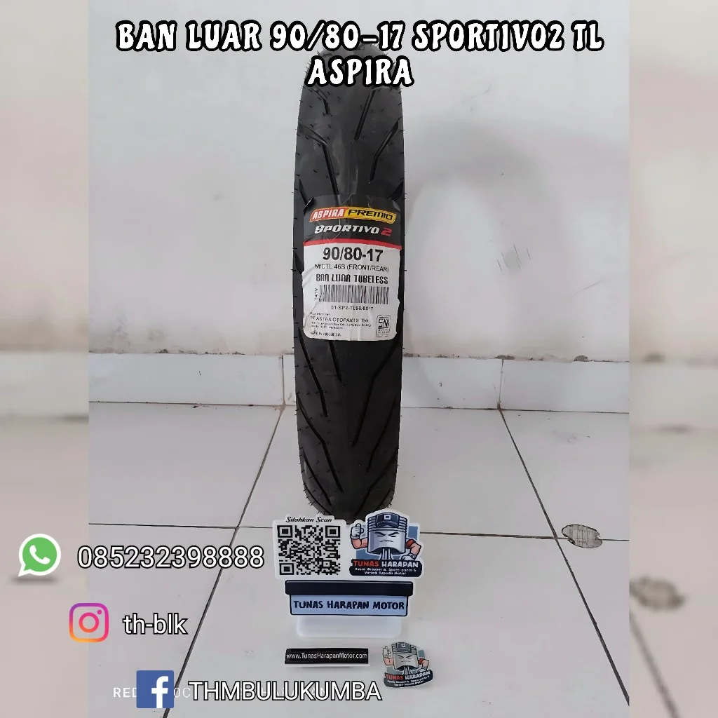 Ban Luar ASPIRA 90/80-17 Sportivo2 TL / Tubeless