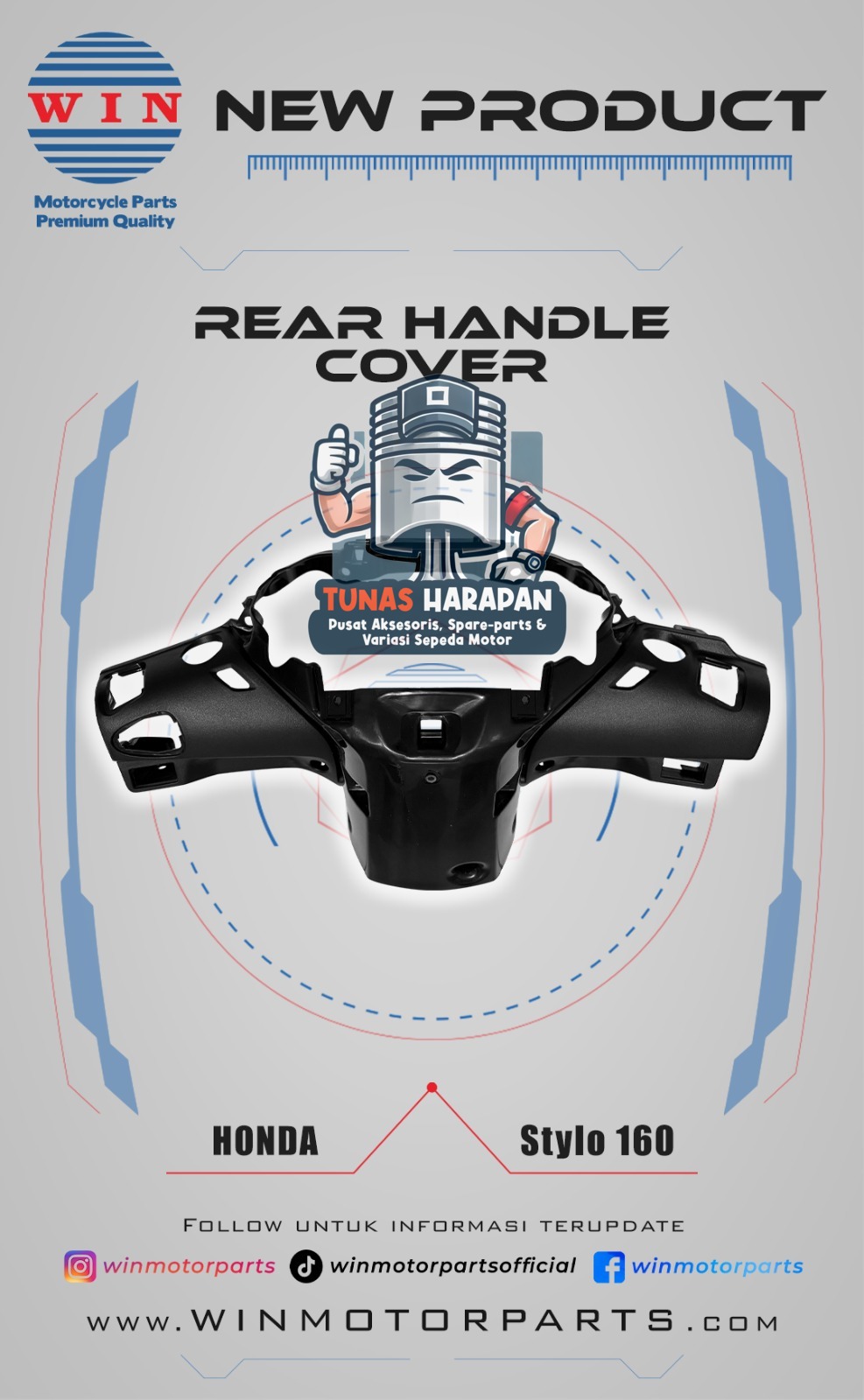 BATOK BELAKANG STYLO 160 HITAM Winpart / Rear Handle Cover 53206-KEV-N00ZA