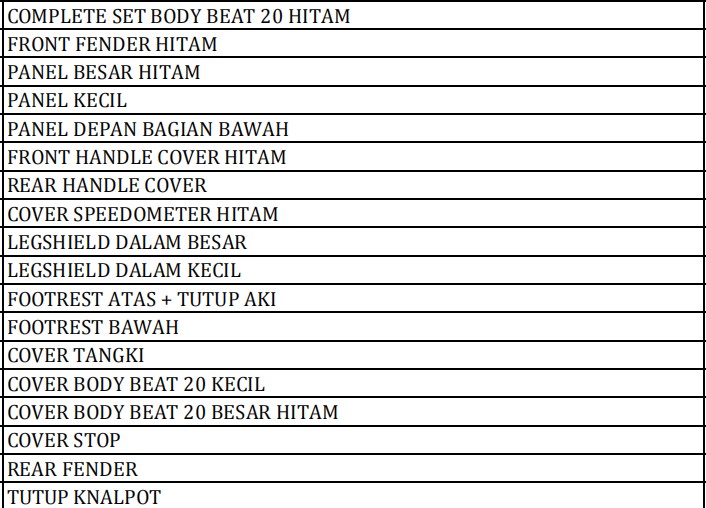 | Kategori | Bodi Set - Complete Set Body |