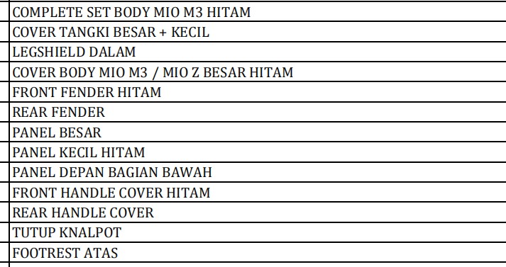 | Kategori | Bodi Set - Complete Set Body |