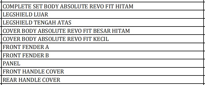 | Kategori | Bodi Set - Complete Set Body |