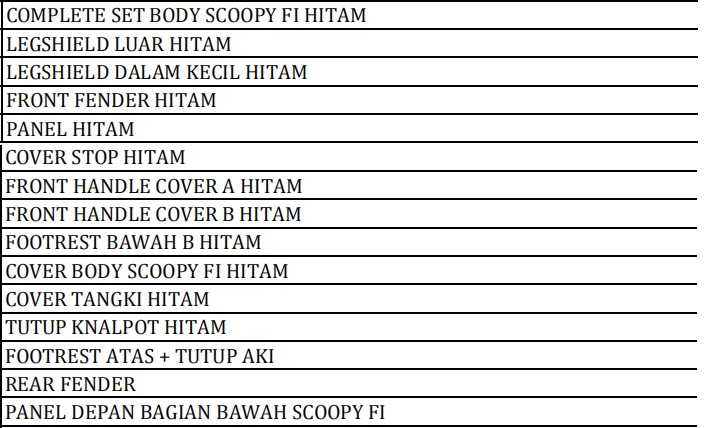 | Kategori | Bodi Set - Complete Set Body |