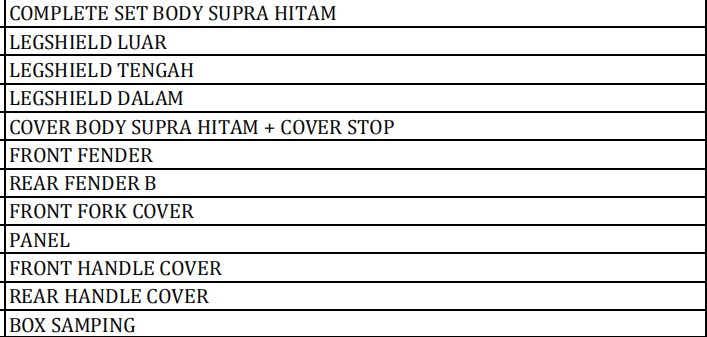 BODI SET SUPRA TROMO...