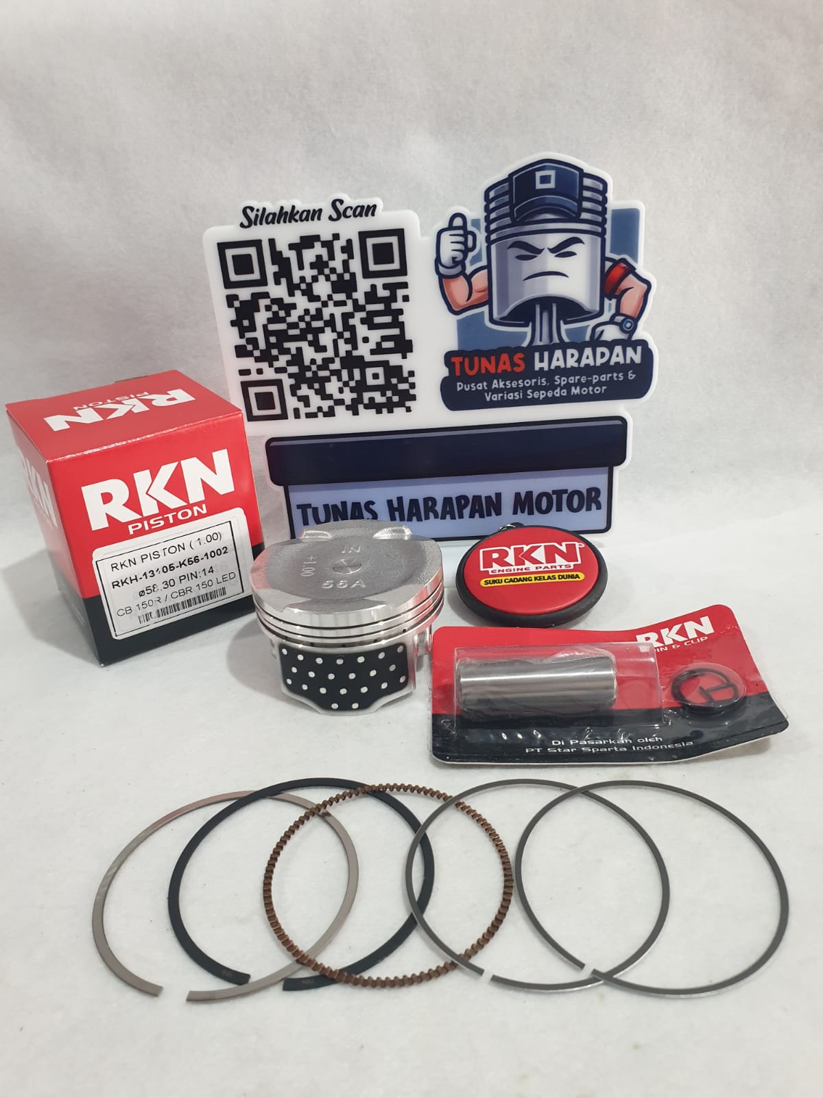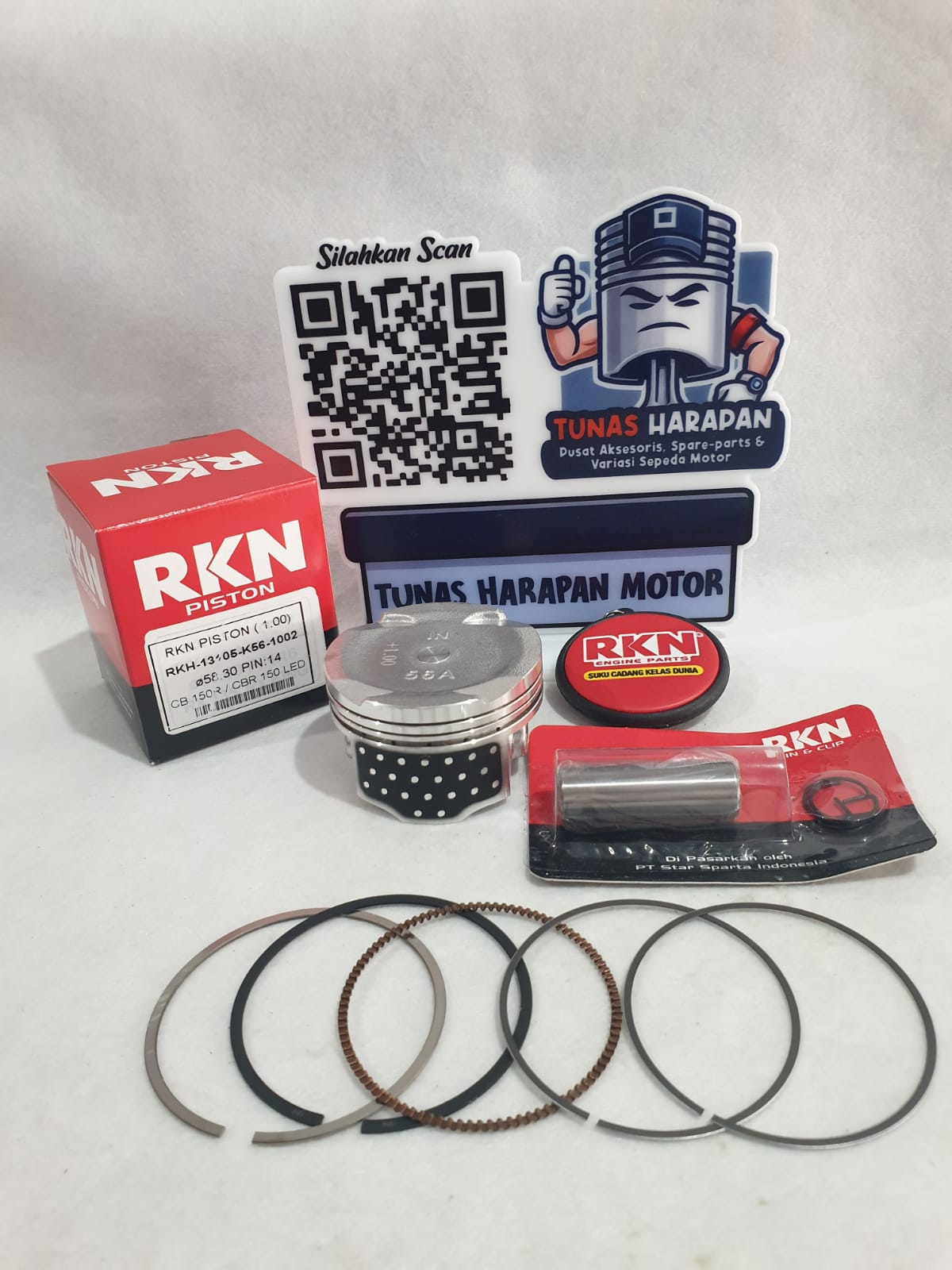 PISTON KIT RKN RIKEN SONIC 150R / GTR 150 / CB 150 R / CBR 150 LED 1.00 Ø 58.30 Pin 14 / RKH-131P5-K56-1100