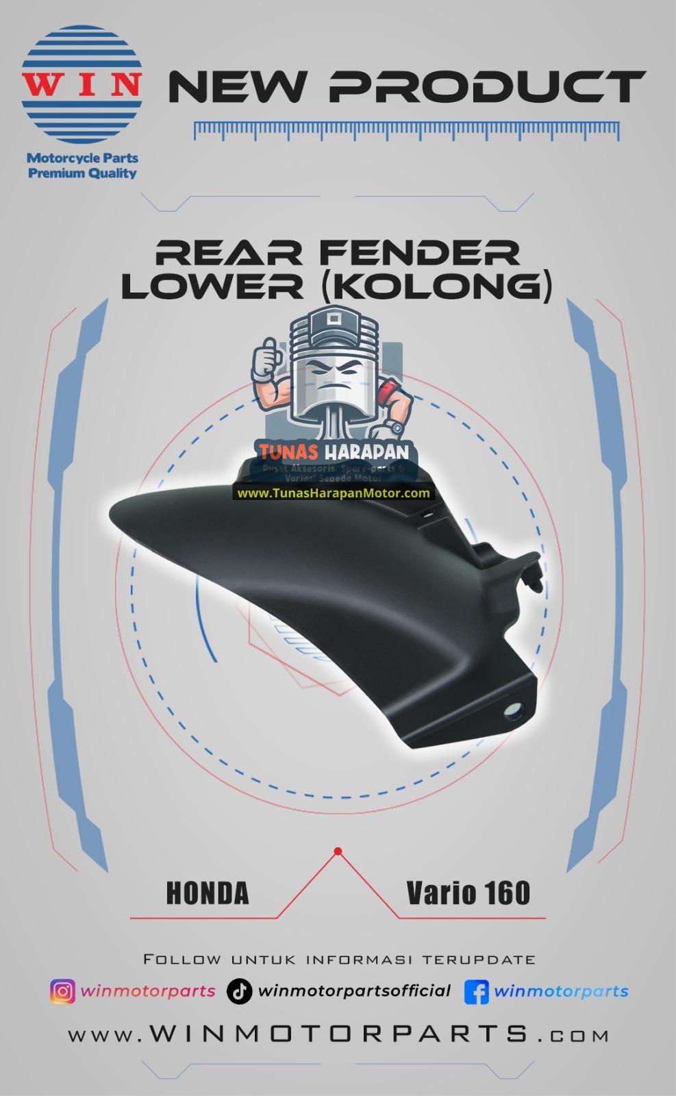 SPAKBOR BELAKANG [KOLONG] VARIO 160 Winpart / Rear Fender Lower 80107-K2S-N00
